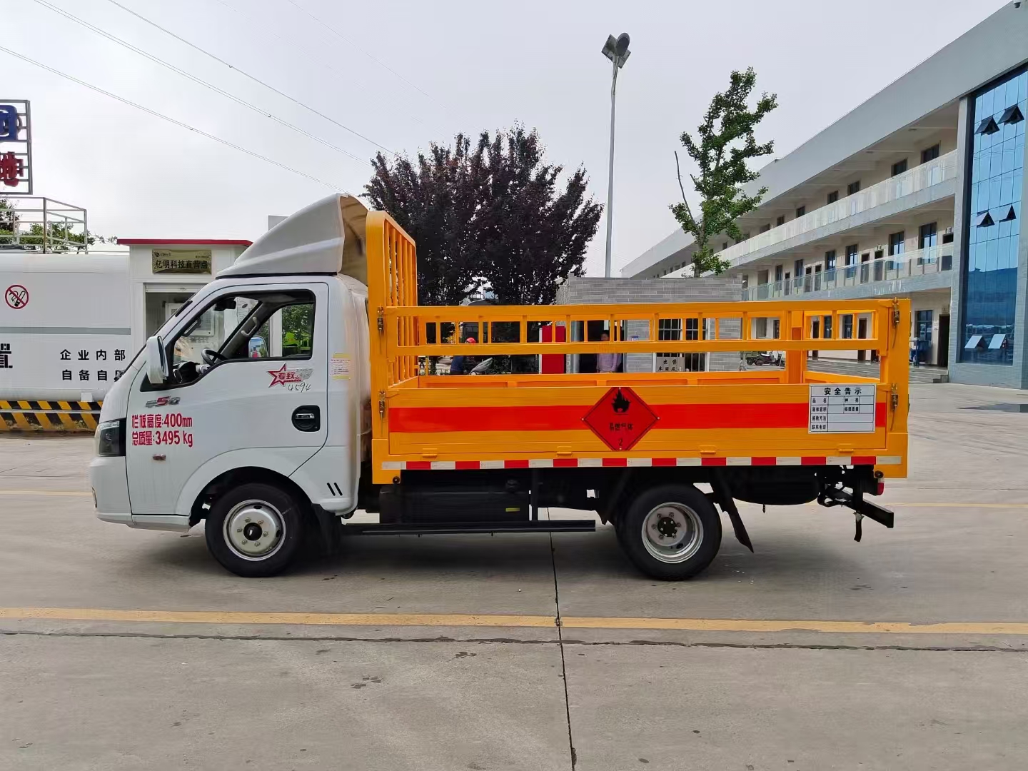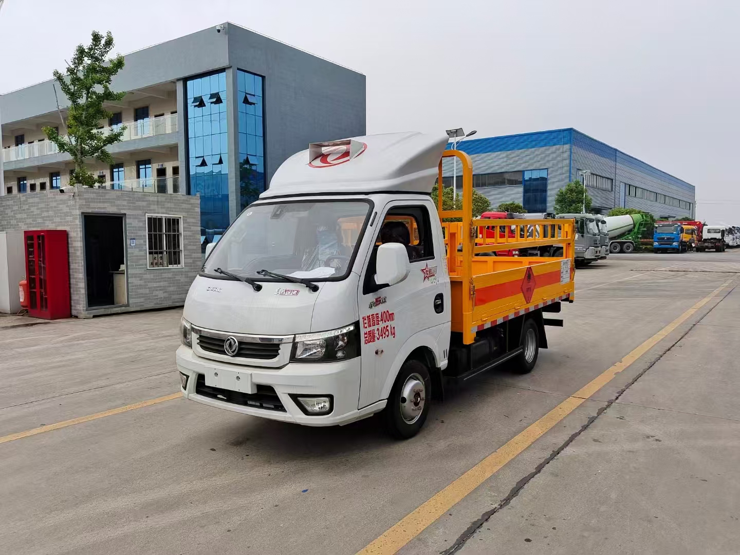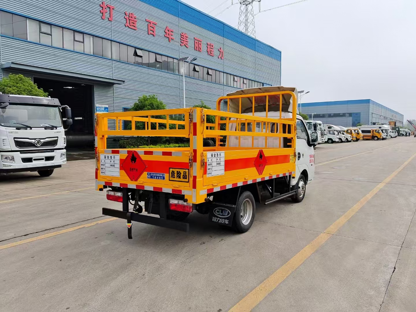 | 上裝配置 | 欄板可選裝高欄或者低欄,底板為3mm板材,底板上鋪有靜電膠皮,有靜電帶、滅火器、防火罩。整車國標反光標示及警告標志。 | ||
