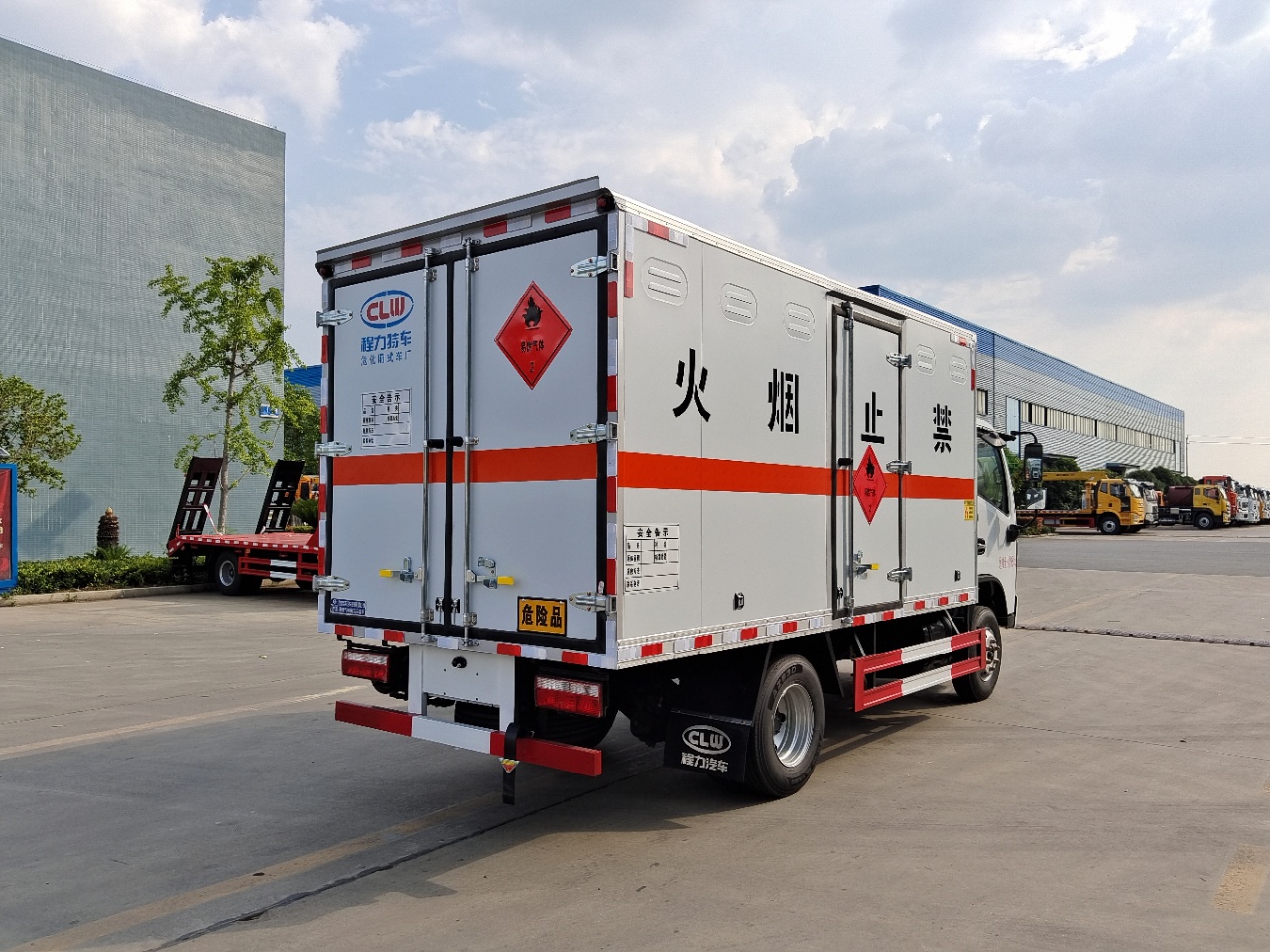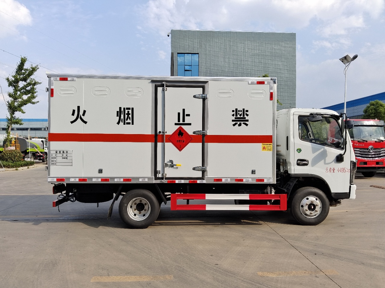 | 貨箱配置 | 廂體為雙層金屬骨架結(jié)構(gòu),外板采用冷軋鋼板,中間填充阻燃泡沫,內(nèi)飾為鋁板。底板為平板上鋪防靜電膠皮。廂內(nèi)兩側(cè)加裝固定貨物臥環(huán),門框帶防盜報警器,頂部帶煙霧報警器,廂體右側(cè)選裝側(cè)門,隨車配2個滅火器,危險標志牌,防火帽,危險品三角頂燈。(也可用瓦楞板) | ||