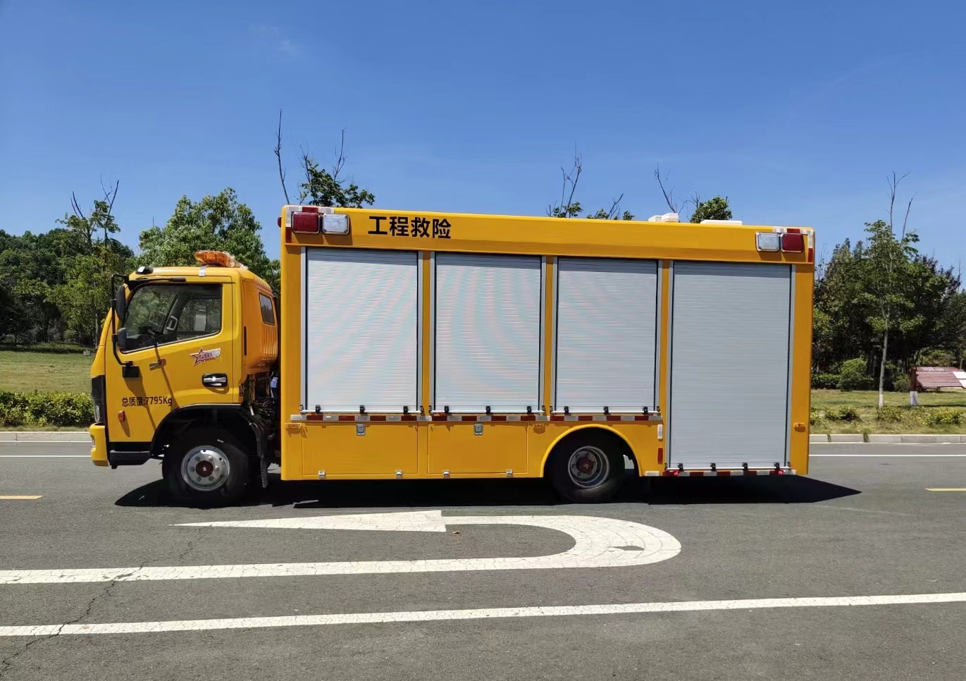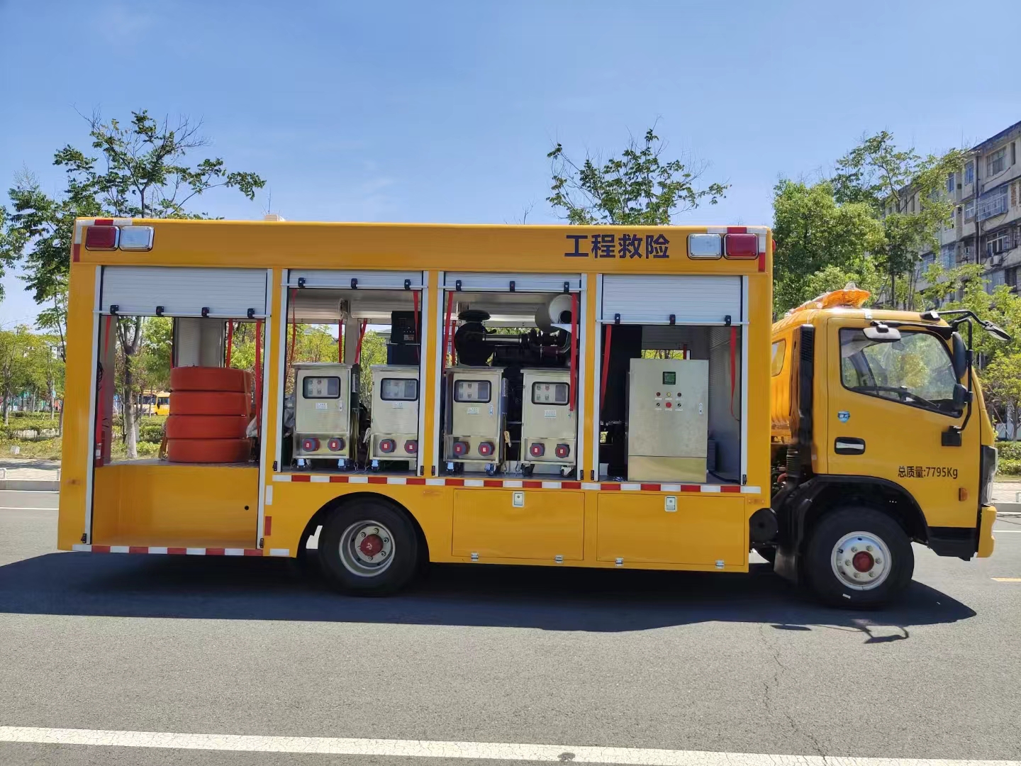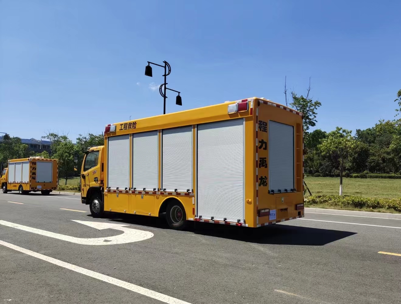 上裝配置  1、廂體外形尺寸根據(jù)實際公告標準。 廂體:具備運輸、防雨、防火、阻燃、防塵、防銹、降燥,隔震、長期抗震結構。外部鋼材為優(yōu)質冷軋鋼板,表面處理平整,內襯優(yōu)質冷軋鋼板折彎骨架,強度牢固,配重合理。 2、廂體一體化鋼體結構設計, 頂部平坦。廂體采用骨架式夾層形式,外蒙皮采用厚1.5mm優(yōu)質防銹處理的汽車專用冷軋鋼板,中間骨架采用防銹處理后的鋼管焊接,頂層、側圍內、外層之間填充長時間使用對人體無害的防火阻燃環(huán)保吸音棉,外層鋪蓋一層阻燃金屬布,內飾采用0.8mm厚網孔板。底板采用鋼結構底框架,上表面鋪厚2mm花紋鋼板。 3、車輛廂體采用整體包覆式,廂體兩側下部設置裙邊式,全封閉式結構,頂部為圓弧型,尾部有轉向燈、剎車燈、尾燈、霧燈,箱體表面光滑平整。車廂靠駕駛室前部為休息室,休息室內帶折疊坐椅及折疊桌,往后為機組室,機組室左、右側布置進排風百窗,設置機組檢修門一個,下置登車踏步梯,車廂后端為后為卷簾門。右側排風百葉窗下部為維修觀察艙門。左側下圍設置有工具箱及功能艙門等。右側下圍設置有汽車油箱艙、液壓控制艙等。 4、車廂尾部配置標準儲物貨架讓出水帶、加長電纜等附件存放有序、互不干涉,讓緊急排水搶險變得更加快捷、有效。 5、廂體噴漆:工程黃,與車頭同一顏色; 6、最終的門數(shù),形式,打開方式嚴格按照合同要求依據(jù)程力公告生產;