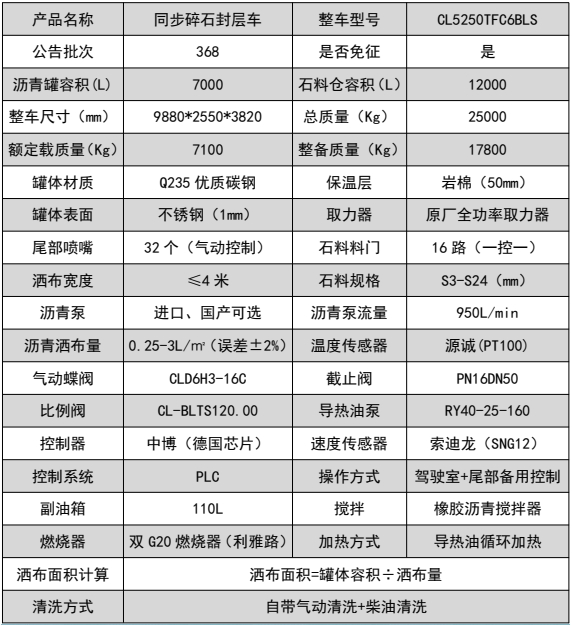 ??????湖北程力汽車:程力CL5250TFC6BLS型陜汽德龍后八輪瀝青同步碎石封層車產(chǎn)品型號及參數(shù)配置,程力CL5250TFC6BLS型陜汽德龍后八輪瀝青同步碎石封層車高清圖片,程力汽車系列程力CL5250TFC6BLS型陜汽德龍后八輪瀝青同步碎石封層車最新報(bào)價(jià)請撥打客服熱線。車輛主要配置 產(chǎn)品商標(biāo) 程力牌 公告批次 372(擴(kuò)展) 產(chǎn)品名稱 同步碎石封層車 產(chǎn)品型號 CL5250TFC6BLS 總質(zhì)量(Kg) 25000 罐體容積(m3) 額定載質(zhì)量(Kg) 7070 外形尺寸(mm) 9900 × 2550 × 3820 整備質(zhì)量(Kg)...