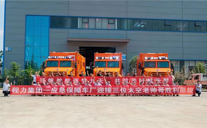 程力制造的航空員保障車迎接神州十二號(hào)航天英雄凱旋