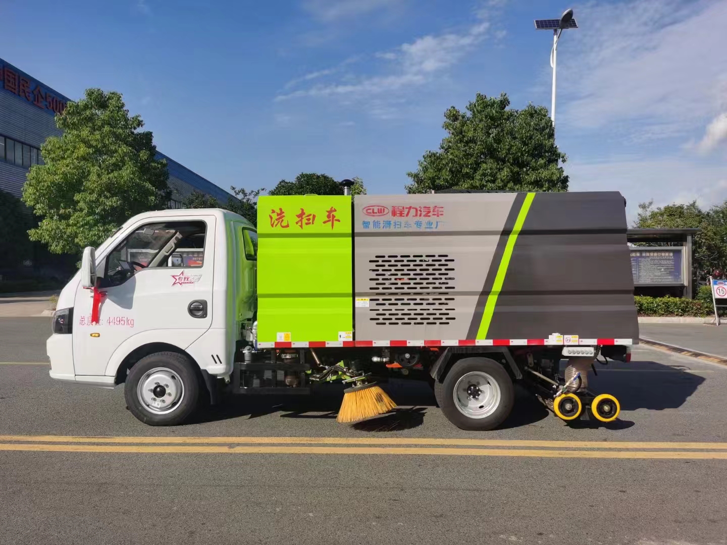 上裝配置 采用云內(nèi)57馬力副發(fā)動機(jī)、5.0高壓離心風(fēng)機(jī)、50L高壓泵、廈門南超自動離合器、1.5清水箱、1.8立方不銹鋼垃圾箱。中置左右立掃、后置吸盤、箱體頂部加裝高壓槍旋轉(zhuǎn)擺臂。全車?yán)浼八淙坎捎貌讳P鋼板焊接而成。清水箱容積1.5立方米、垃圾箱容積1.8立方。清水箱加裝低水位報警系統(tǒng),垃圾箱內(nèi)部加裝污水箱自溢系統(tǒng)。單次注滿水滿負(fù)荷最大作業(yè)時長可達(dá)35至45分鐘。